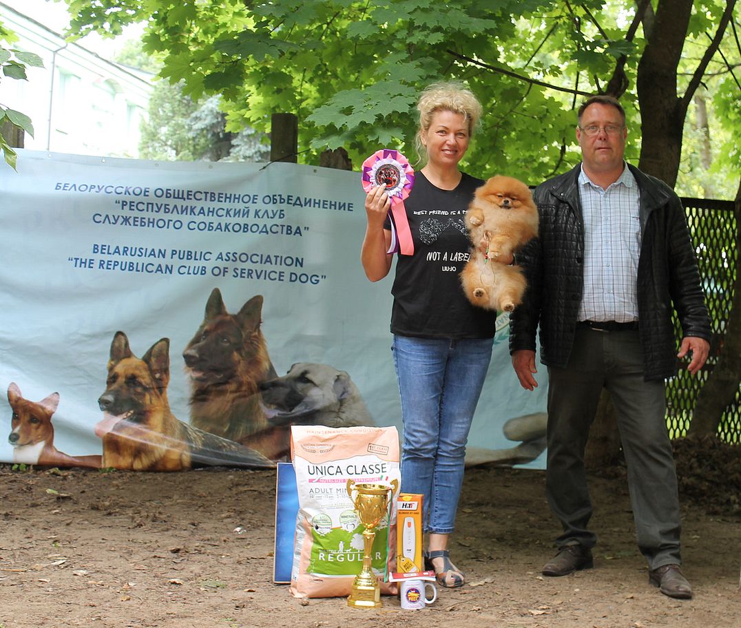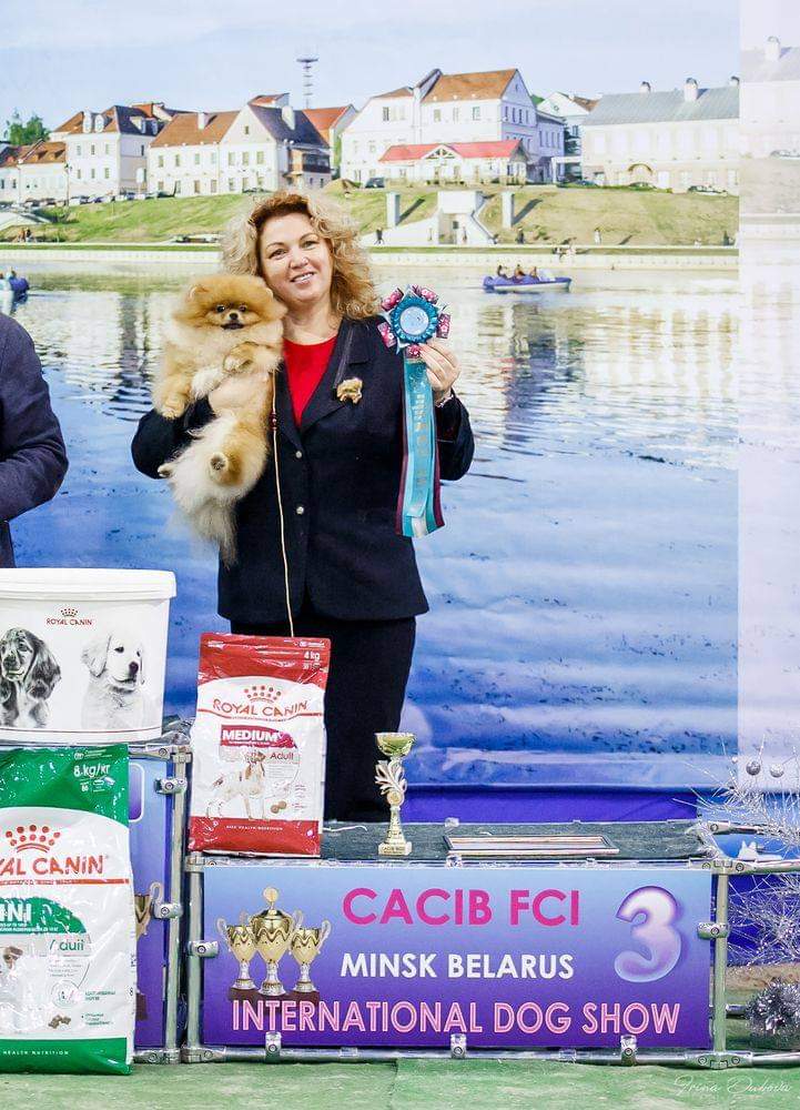 Беллиссимо Стар Олимпик Виват (Виски) – один из самых титулованных шпицев нашего питомника. Виски дважды, в 2020 и 2021 году, входил в 20-ку лучших собак Беларуси, а в 2021 году – стал лучшим кобелем шпицем нашей страны.